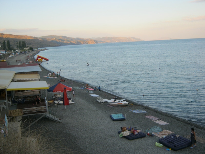 На широком галечном пляже без волнорезов всегда можно найти себе место для спокойного, даже уединенного отдыха у моря.